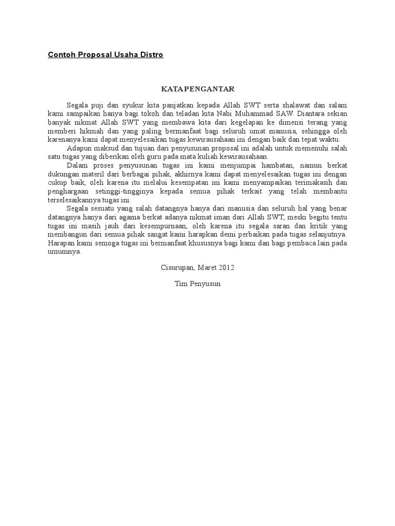 Contoh proposal usaha distro (kewirausahaan). Maka kami berinisiatif untuk membuka suatu usaha distro yang up to date dan mengerti akan kebutuhan masyarakat. 130110101133 fakultas sastra universitas jember kabupaten jember 2013/2014 bab i pendahuluan . Proposal usaha "distro" · 1) berperan aktif dalam bidang bisnis dan kewirausahaan, · 2) menyediakan kebutuhan fahion bagi masyarakat, supaya lebih . Makalah rancangan usaha nama â â â â :