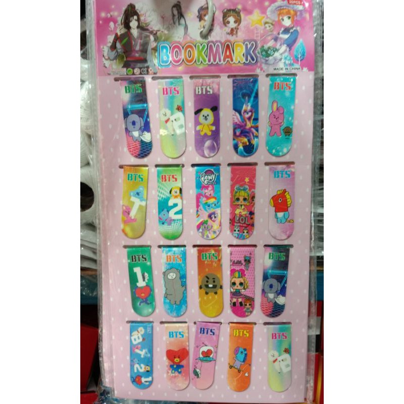 Pembatas buku plastik + magnet hologram karakter bts bt21 pembatas buku plastik 80pcs pembatas buku magnet 1pcs harga :